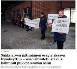 Sääksjärven osayleiskaavan hyväksymisen jälkeen syksyllä 2024 tein yksityishenkilönä valituksen hallinto-oikeuteen.